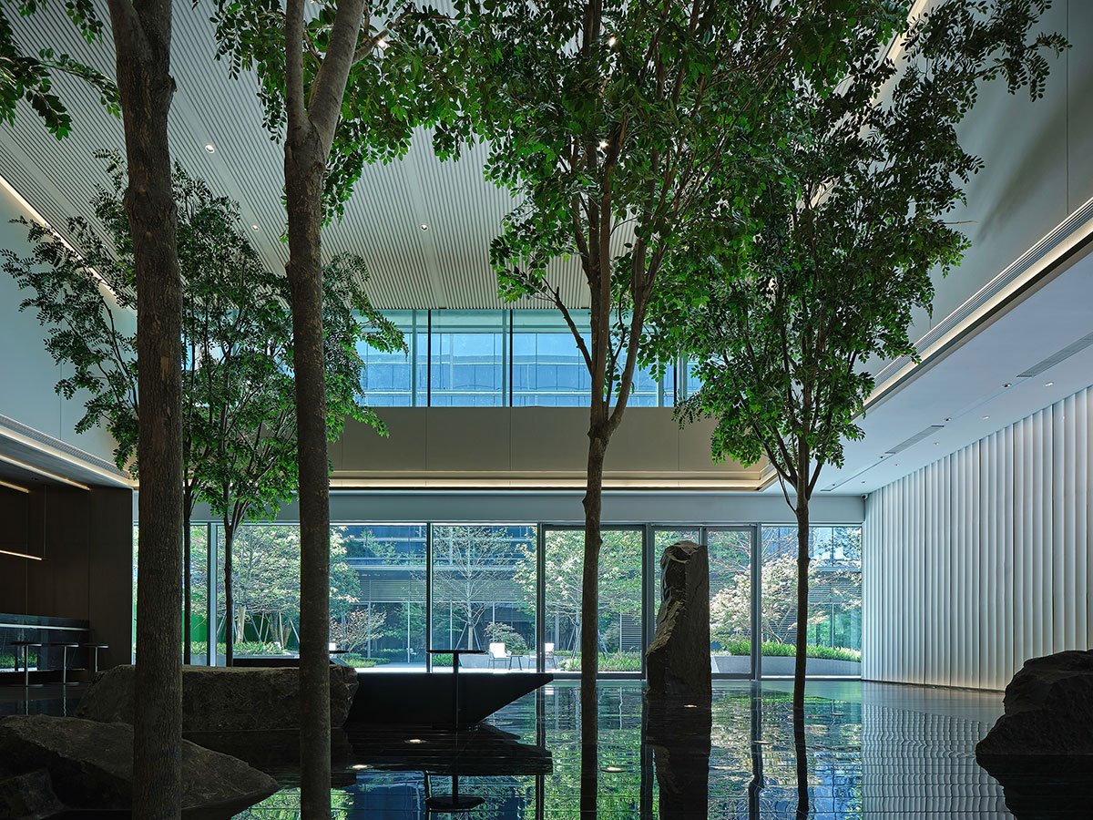 The main entrance is located in the landscape view corridor. In the initial thinking, the designer hoped to find an interior aesthetic style suitable for a modern office or how to reflect the form of a modern office. Finally, the designer thought to design a continuation of the natural space so that the static garden becomes the core spiritual support of the space. The function is also an aesthetic expression of design thinking. To create a place where people can rest spiritually.
