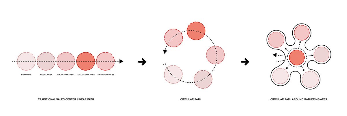 The typical exhibition centre is designed as a loop or a one way path. Often a courtyard or site model is placed at the centre as a focus, circulation is linear, lacking interconnection between distant spaces. We decided to challenge this norm by creating a public area at its centre, a place for discussion and interaction. We wanted to design the space to be more human centric and welcoming. The other functions are arranged as peripheral crystal ‘ramifications’, connected to the central heart.