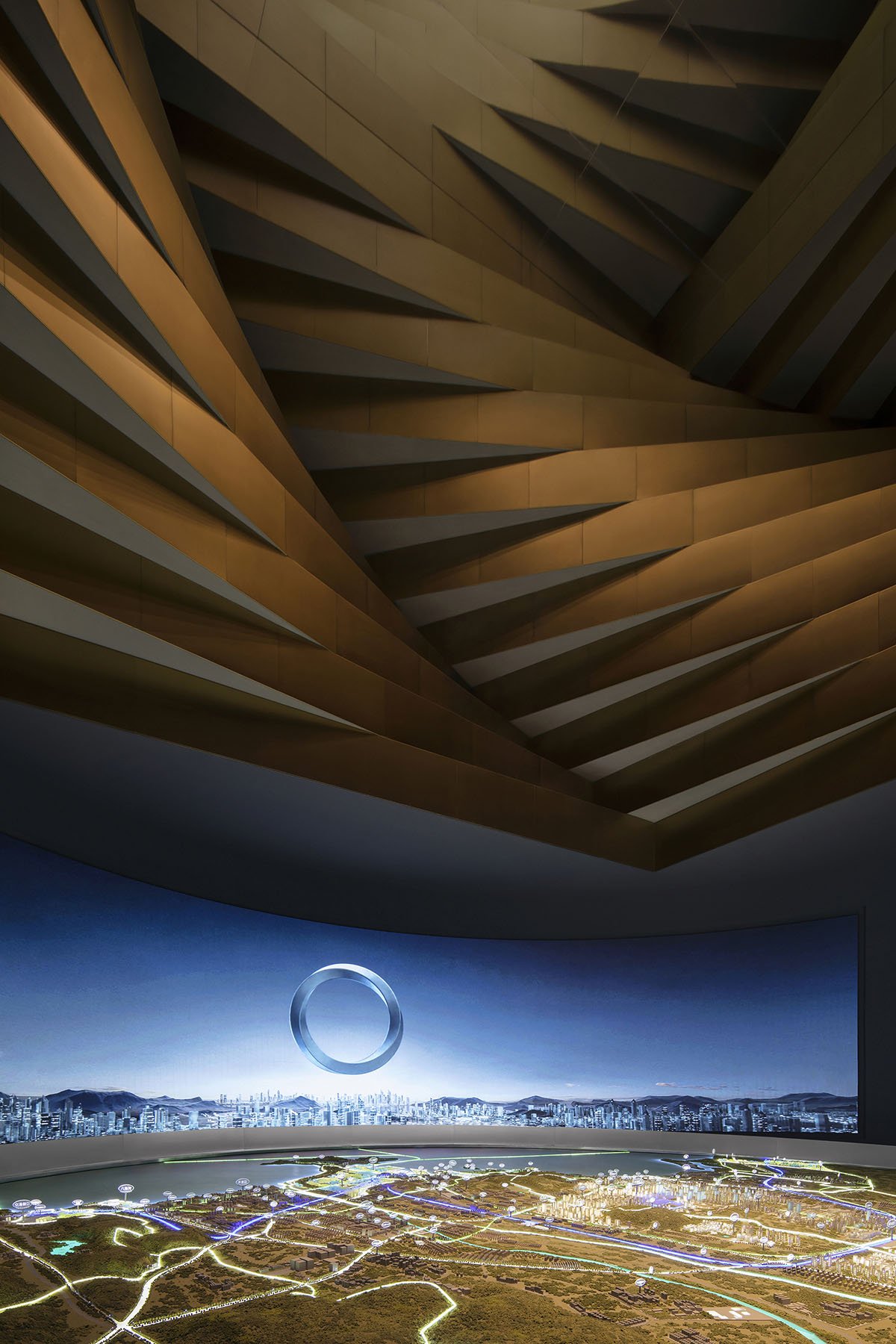 Excerpt: Yantai Experience Centre, designed by More Design Office, contrasts the new development’s homogeneity through form, materiality, and relationship with the landscape in China. The architecture becomes unity of positive and negative spaces. Like a snow-crystal structure that can be read as a pattern in its presence or absence of matter. The landscape areas, entering the sides of the building, become part of the whole rhythmical dialogue of the exhibition spaces, bringing light to the interior space.
