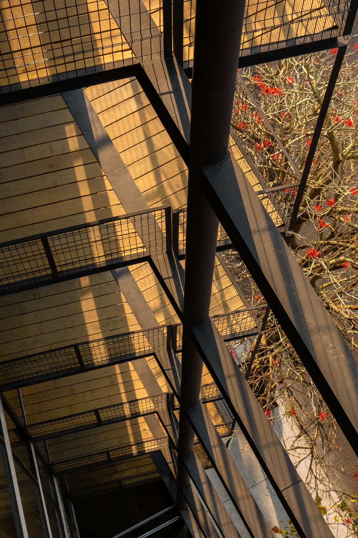 Based on these considerations, we are faced with the challenge of creating a vertical, multifamily building, consisting of 8 levels, including a ground floor entryway and 7 apartments, on the site that previously had a deteriorated, single-family house. The land where the apartment building is located has an area of 92m2, with an irregular trapezoidal shape that further complicates the project design. The lot has two street fronts, including one that is 8 linear meters reducing down to only 4 meters, and the second is 15 meters long, overlooking one of the most important avenues in CDMX, along which runs a linear park built on the Rio de la Piedad, a river piped with sewage.
