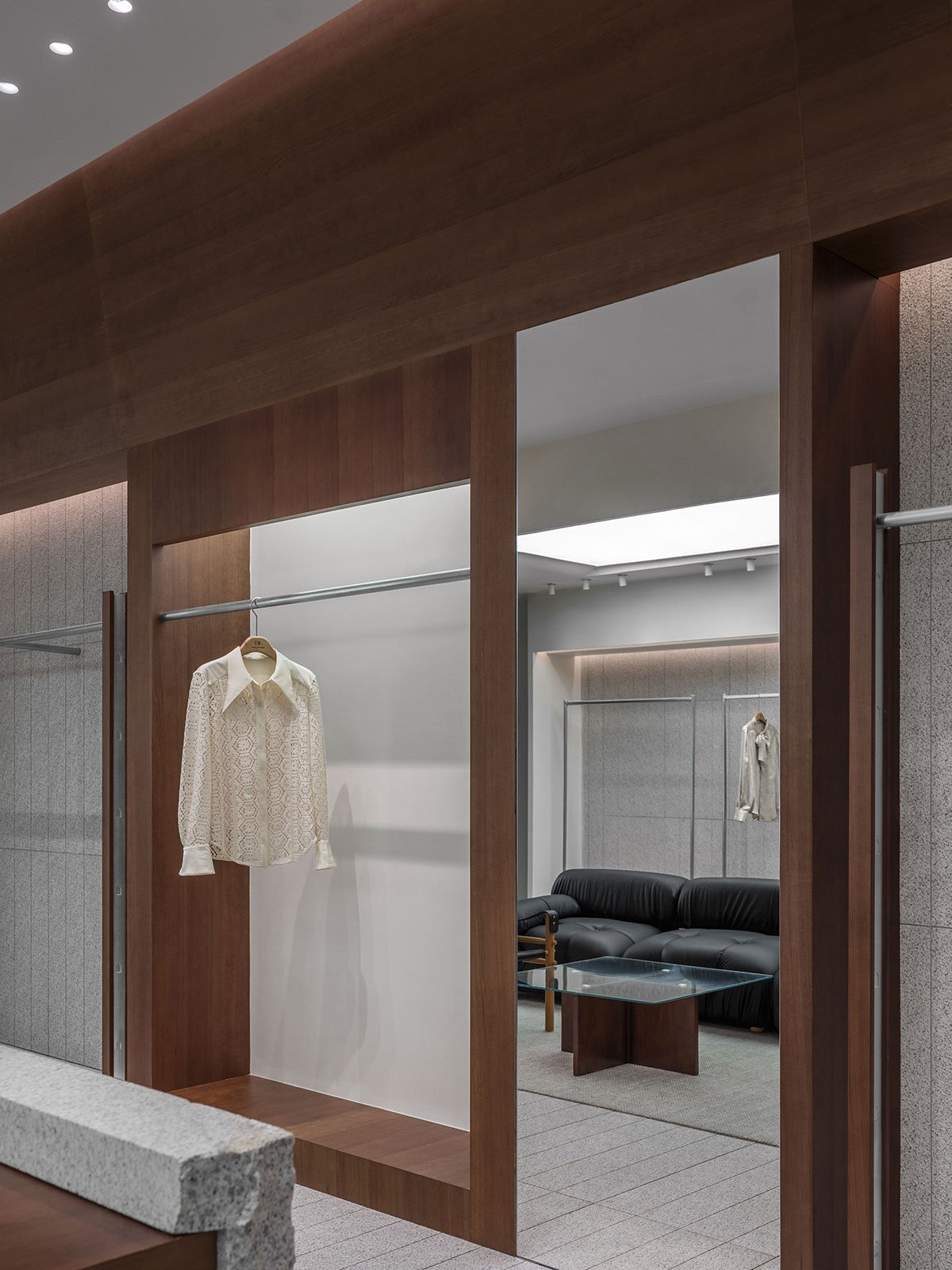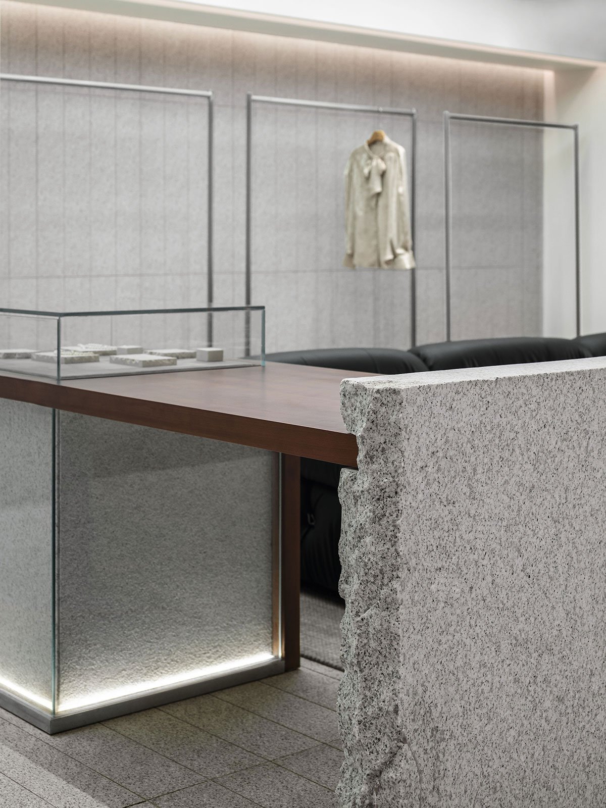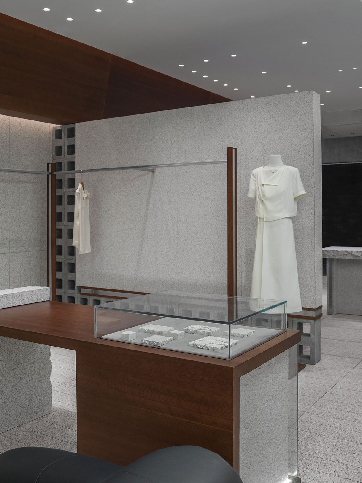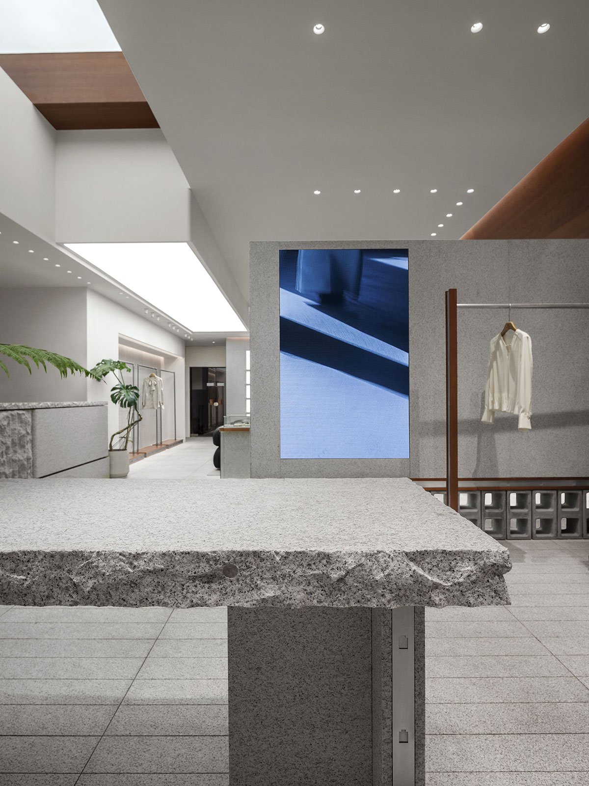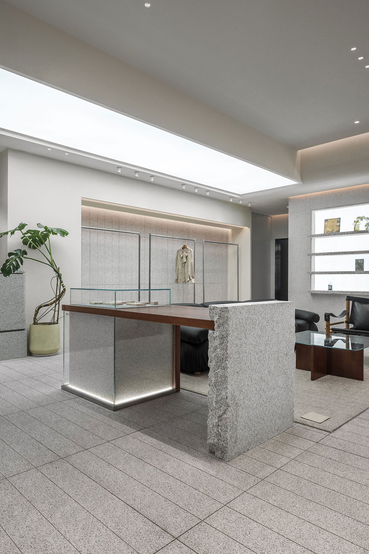 04 Soothing ambience: Lighting control and spatial circulation arrangement are crucial to a consumer’s shopping experience. Wood and granite generate a peaceful atmosphere through their tactile and visual qualities, responding to consumer behavior, mentality, and emotions through natural textures. The space encourages consumers to slow down, returning to the essence of shopping.