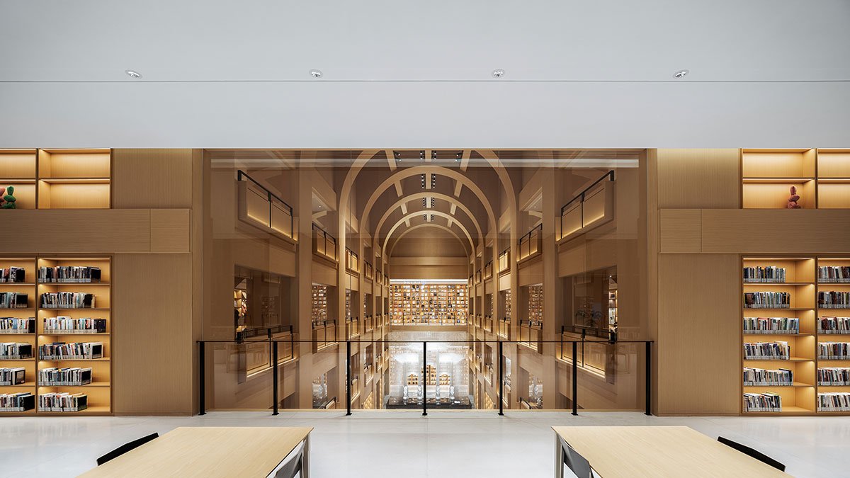 The B area, where the treasures are collected, exhibits a sacredness. In this regard, the architects borrowed the basilica, a typical spatial type of Catholic churches in the neighborhood of the library, to sanctify the atrium. The atrium ceiling is designed as an arch to complete the symbolic interpretation of the library as a temple of knowledge for people nowadays. The arch-form language is replicated on the first floor to form a continuous spatial expression, further divorcing the interior narrative structure from the facade construction logic to better fit the narrative of the Chinese set box. And because the Tou-Se-We Museum did not end up incorporating the library, we didn’t introduce the pagoda into the atrium.