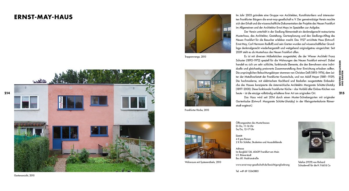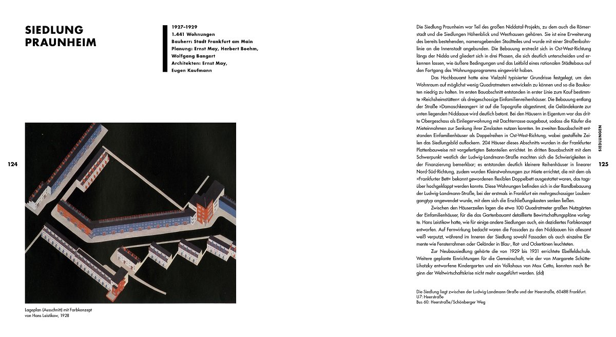 In the first part of this book, essays shed light on the cultural background of the New Frankfurt initiative, provide insights into the context of the work of its many proponents, trace the end and after-effects of the scheme, and sketch out the current situation in the housing market. In the second part, richly illustrated short texts explore the main themes of the programme, as well as its most important estates and buildings, to provide an overview of the New Frankfurt phenomenon. Each featured object includes the address and information on public transport links, inviting readers on a tour of Frankfurt’s modernist heritage.