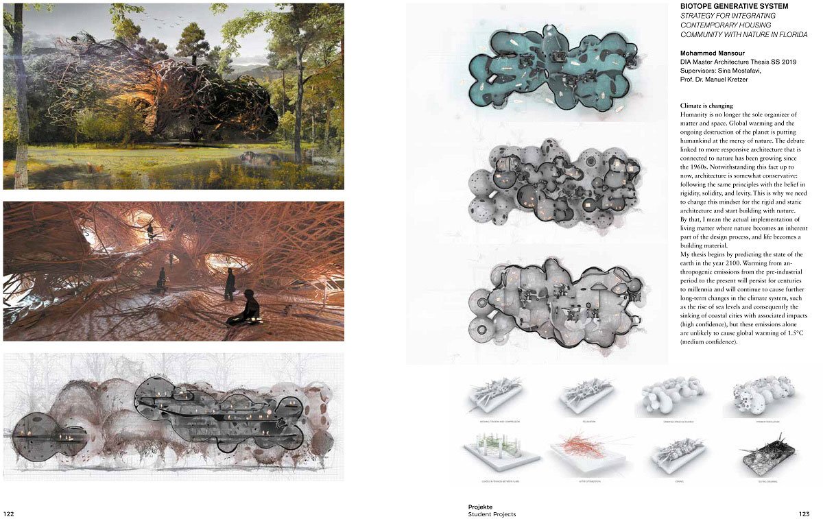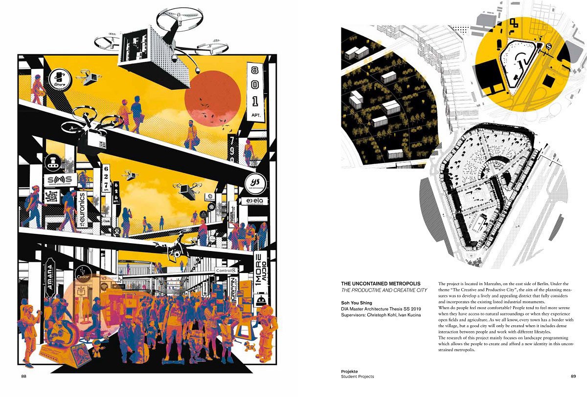 The main part of the book, which documents the projects by students from the bachelor and master programmes, is accompanied by numerous essays from the school’s lecturers. Deacon Matthias Höhne, for example, advocates an education encouraging independent working and researching as a mirror of current social trends. It should empower students to create architecture of enduring beauty with optimal usage quality. Sustainable planning, ecological foresight and social responsibility consistent with a technologically ambitious approach – these are topics at the focus of the master degree on architecture at the Anhalt University of Applied Sciences. Ralf Niebergall shows that the central German provincial region around Dessau can be the ideal hotbed for cosmopolitanism – if, as is the case at the Dessau International Architecture Graduate School (DIA), students from a wide variety of cultural and social backgrounds with a shared passion, architecture, come together. Sandra Giegler has a track record of 20 years of collaborative teaching and learning at DIA, Germany’s largest English language master’s course in architecture. The fact that this unique school of architecture, with its teaching profile explicitly geared towards internationality and diversity, plays a pioneering role for the whole of Germany, is emphasised by Johannes Kister. The title also introduces three different teaching concepts represented at the Anhalt University of Applied Sciences. Alfred Jacoby supports the collaboration, the collage, of research and intuition across all the design disciplines. Natascha Meuser seeks the vision of interdisciplinary teaching with a focus on people. Stephan Pinkau introduces the COOP Design Research master’s programme which is aimed at practising designers, and is a course run by the Anhalt University of Applied Sciences and the Bauhaus Dessau Foundation in collaboration with the Humboldt University of Berlin.