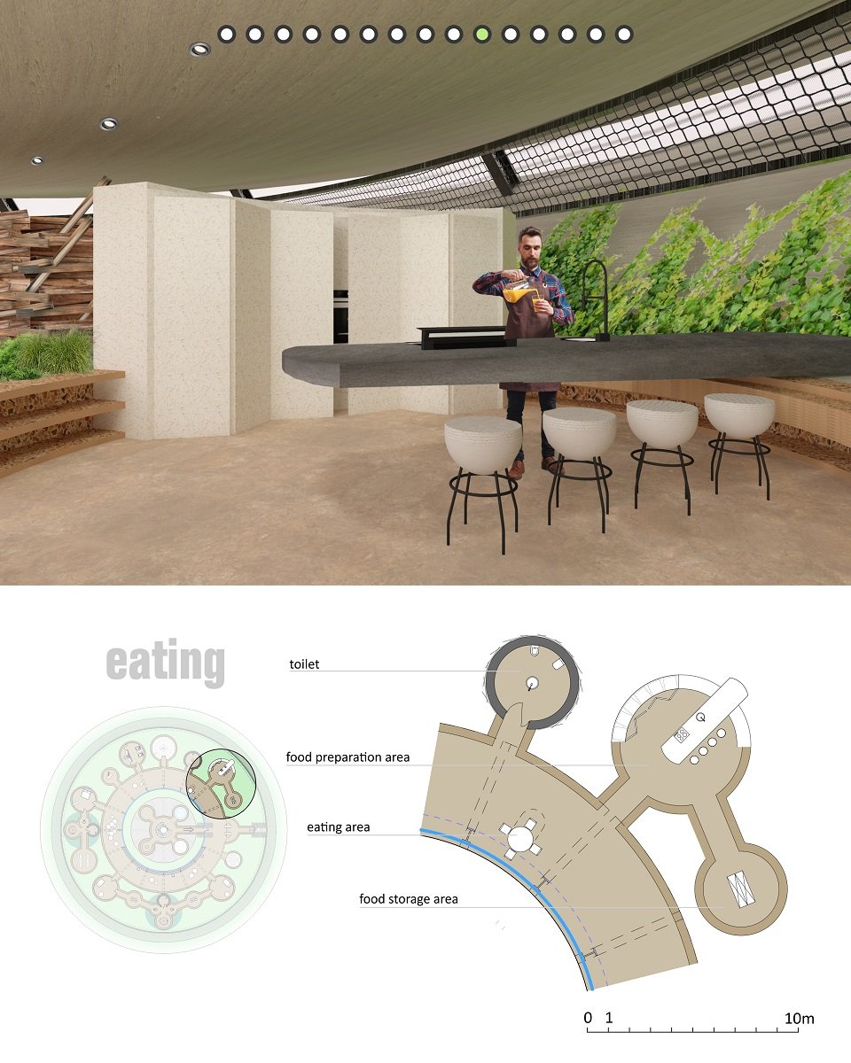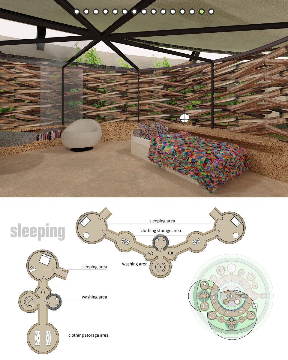 The way this home is designed to be sustainable is very good. I love the roof structure that collects rainwater and solar energy, as well as the sustainable materials used. I think it would definitely work as an off-the-grid residence. The only concerns are the structural feasibility and the scale of the living space (so far apart)._ Deirdre Renniers