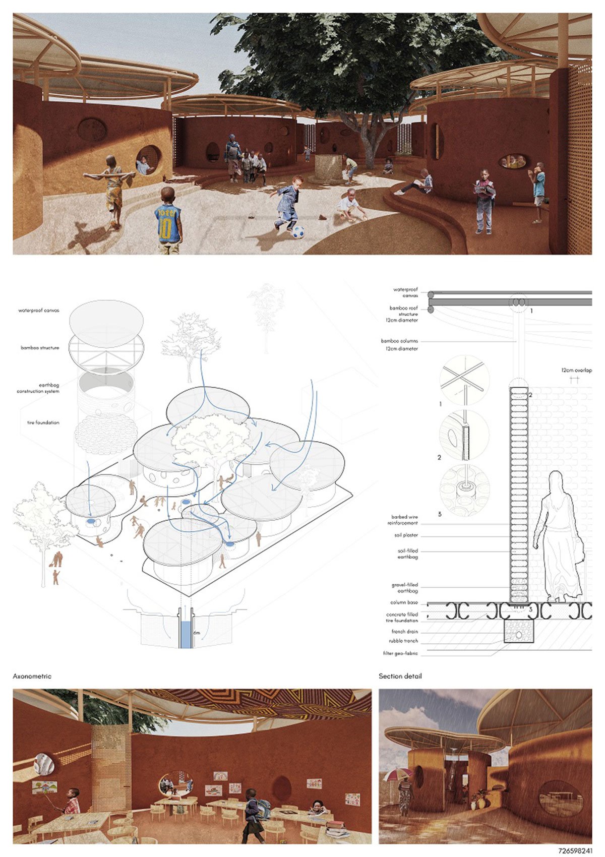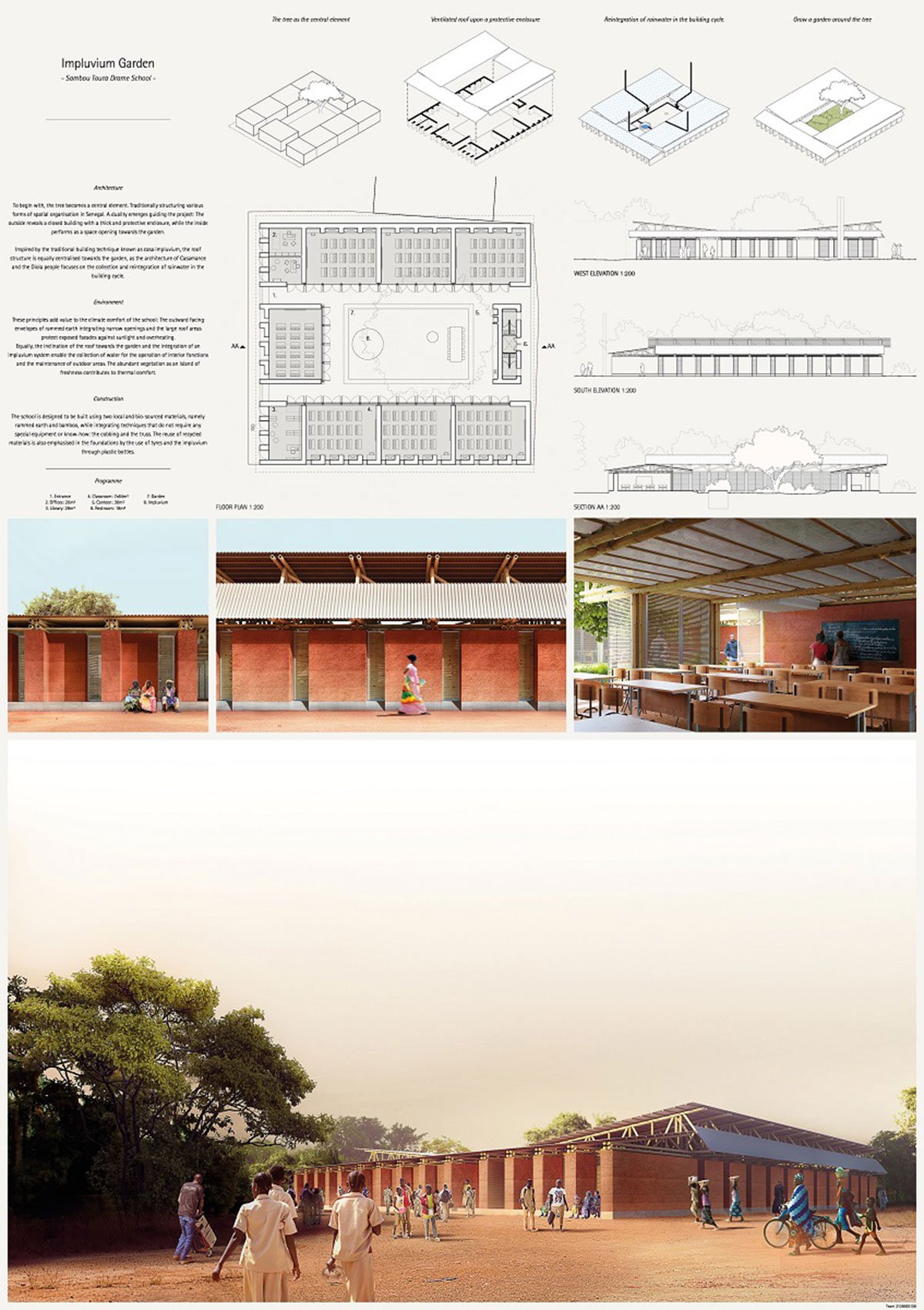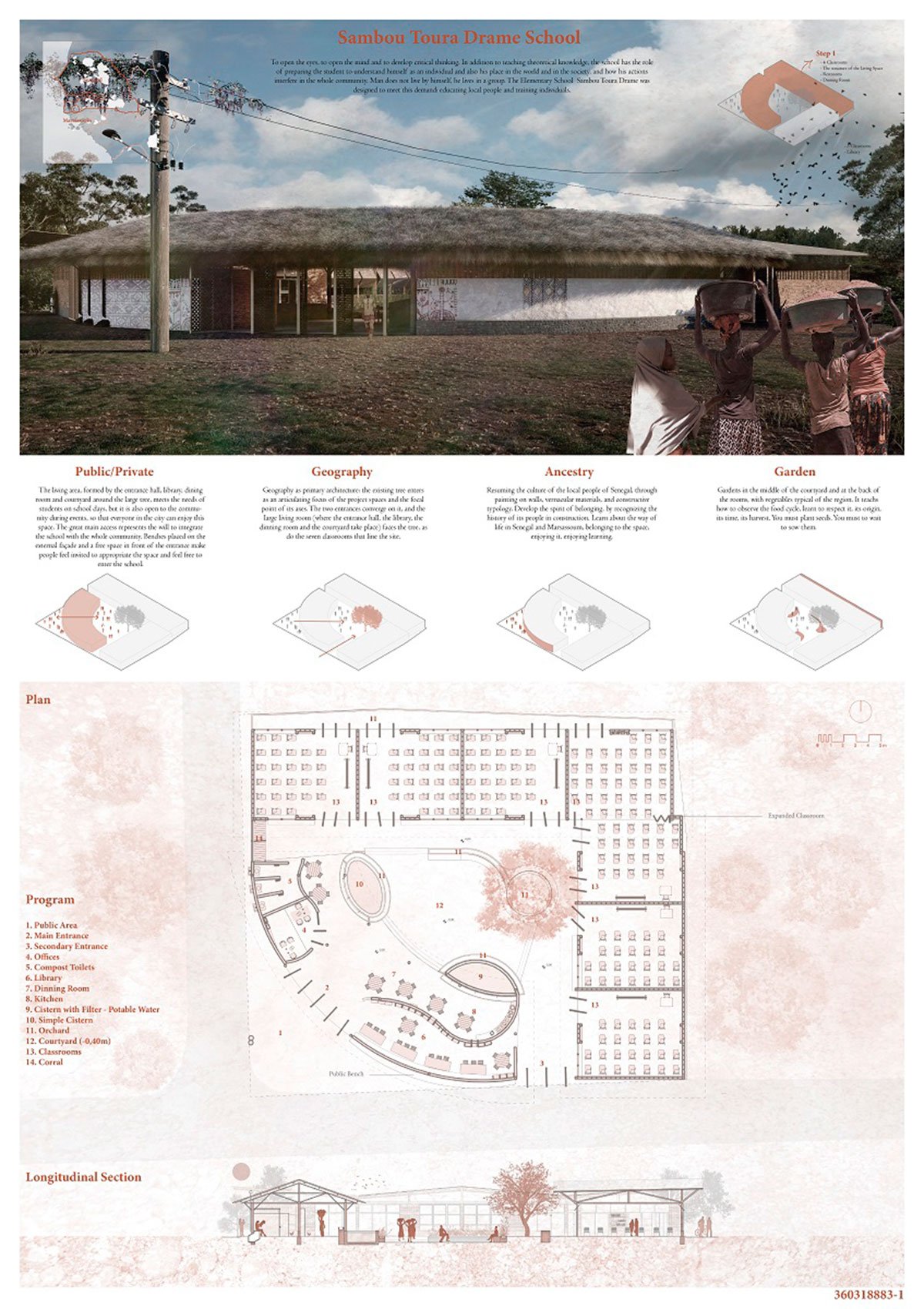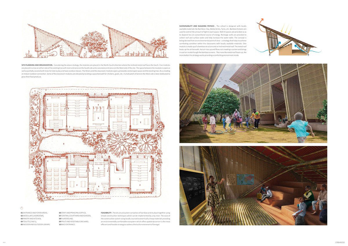 “Providing access to education in rural areas, alongside reducing the environmental impact of the construction sector in Senegal, is imperative. With this project, we do not wish to only build a school. We aim to transform the construction process into a training program for the Senegalese youth, bringing awareness to the potential of traditional building materials and the architectural methods of their cultural legacy. Our proposal highlights the use of vegetable fibers associated with recycled and affordable materials into a culturally driven, low technology architecture.”