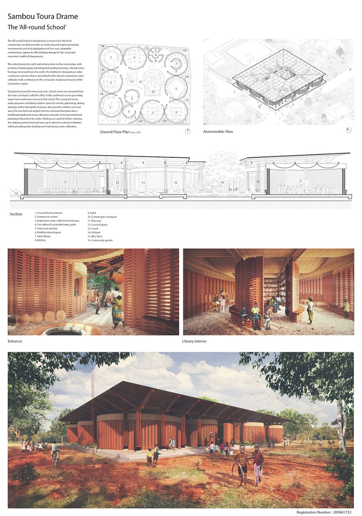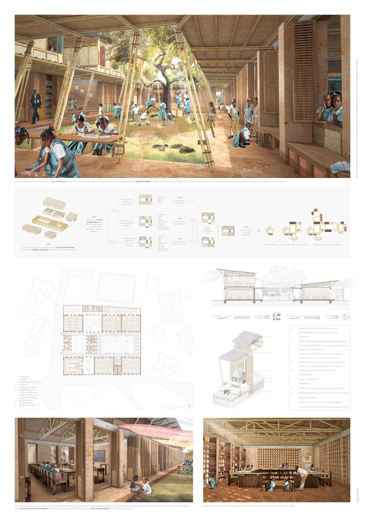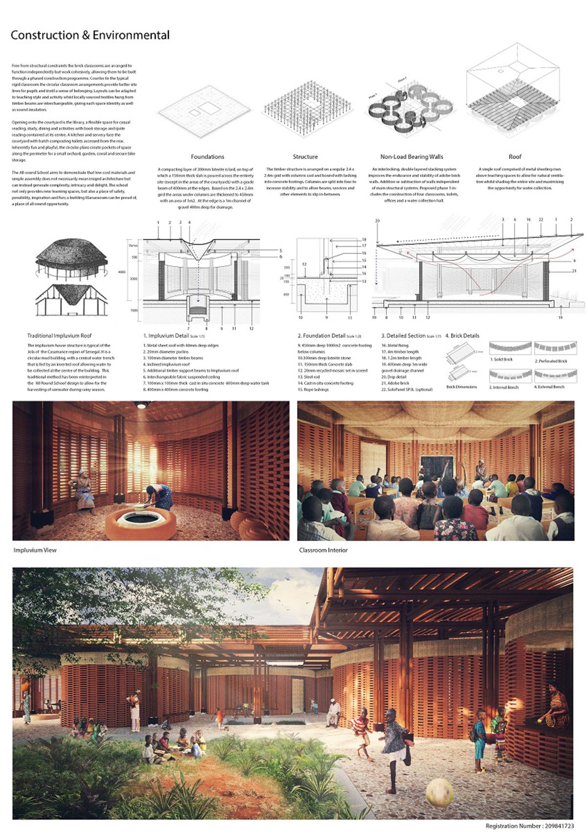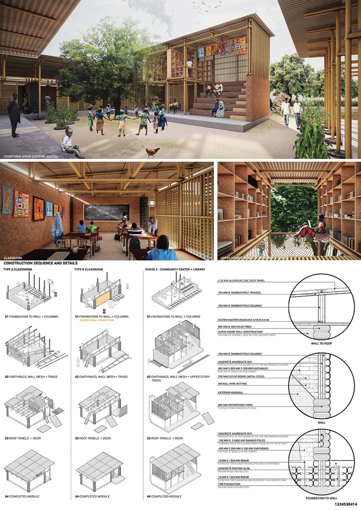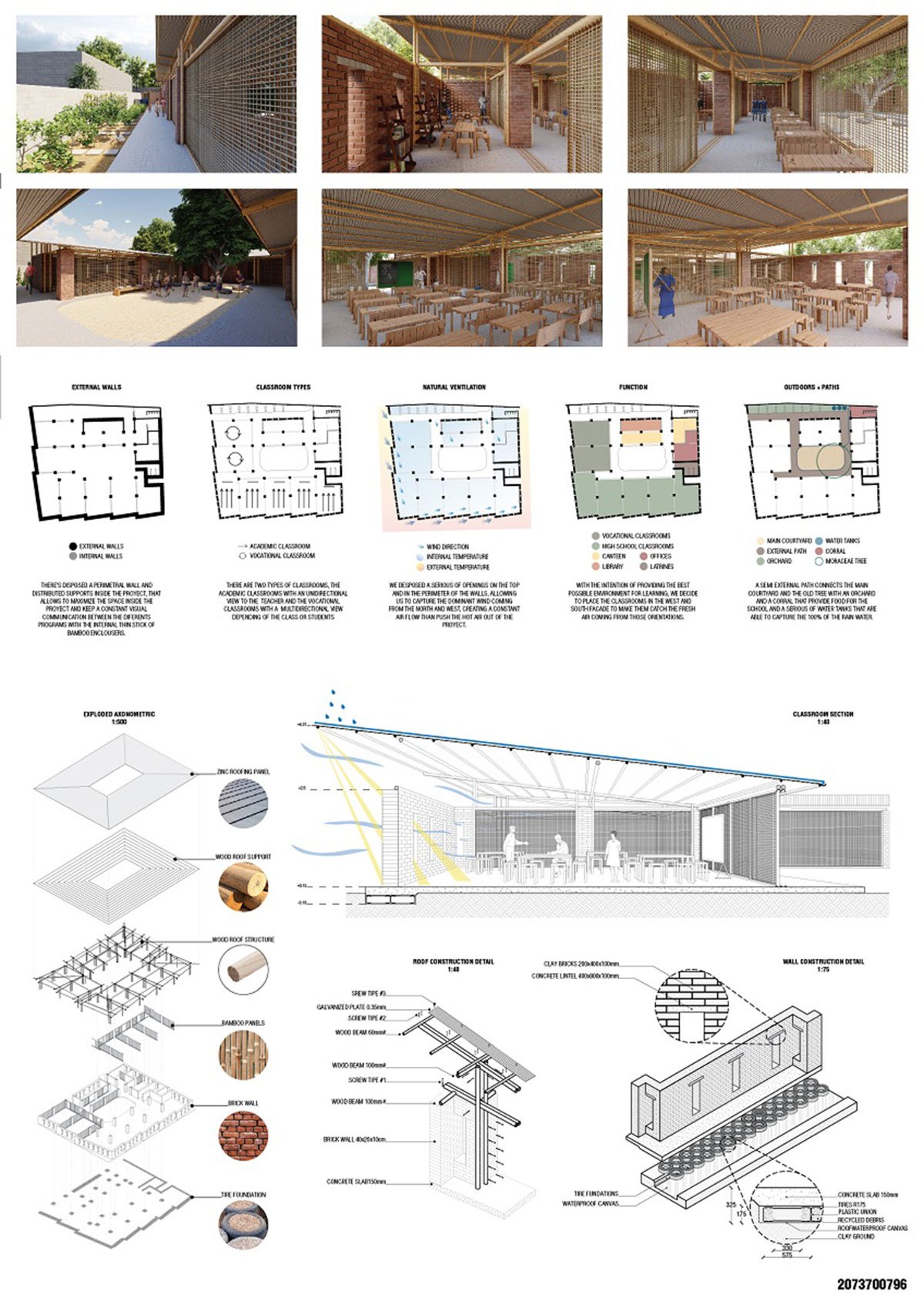“Providing access to education in rural areas, alongside reducing the environmental impact of the construction sector in Senegal, is imperative. With this project, we do not wish to only build a school. We aim to transform the construction process into a training program for the Senegalese youth, bringing awareness to the potential of traditional building materials and the architectural methods of their cultural legacy. Our proposal highlights the use of vegetable fibers associated with recycled and affordable materials into a culturally driven, low technology architecture.”