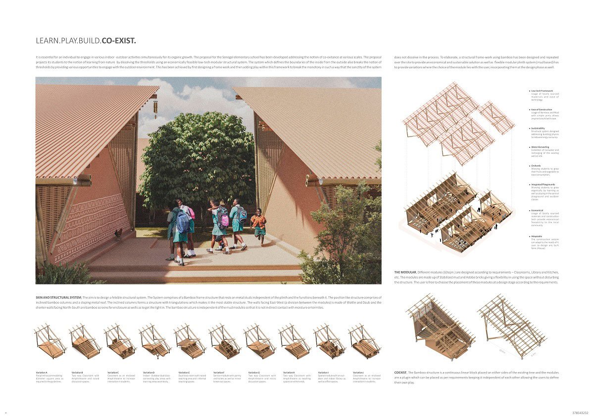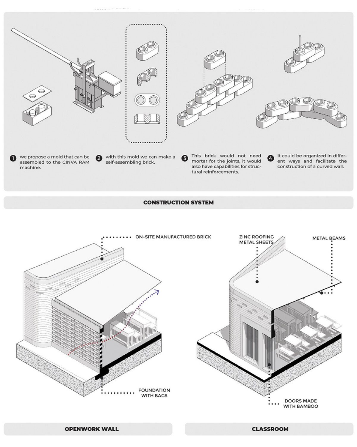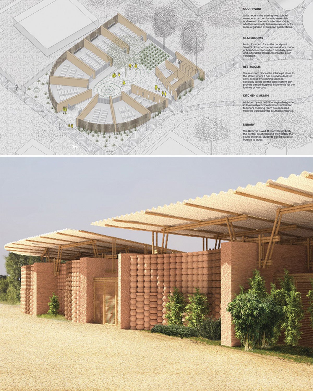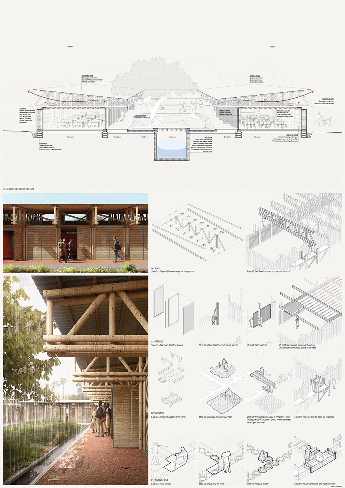 “Providing access to education in rural areas, alongside reducing the environmental impact of the construction sector in Senegal, is imperative. With this project, we do not wish to only build a school. We aim to transform the construction process into a training program for the Senegalese youth, bringing awareness to the potential of traditional building materials and the architectural methods of their cultural legacy. Our proposal highlights the use of vegetable fibers associated with recycled and affordable materials into a culturally driven, low technology architecture.”