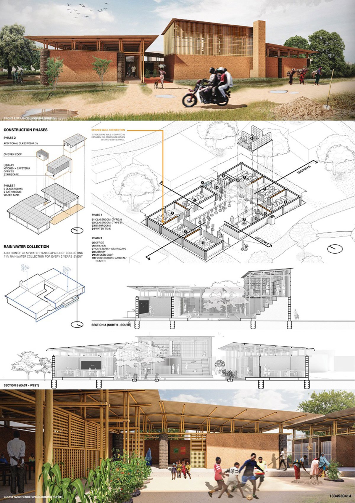 Just as the river is central to the region’s cultural and economic life, the school becomes a new hub for education, culture and economic opportunity through its use of local materials, affordable construction techniques, and programming.”