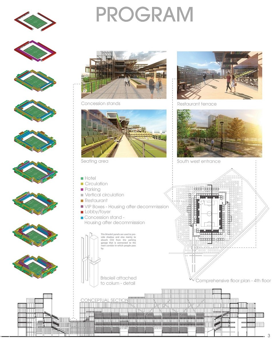 The “Staydium 2.0” challenge is to design a concept stadium for national and international events in a small city, such that the setup could be used/reused for many purposes beyond sports. The sheer culmination of many facilities and building services makes a stadium an ideal box to serve many functions beyond sports.